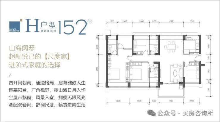 152㎡5房3卫:竖厅南北通,客厅开间4米主卧3.8米,双套房朝南。