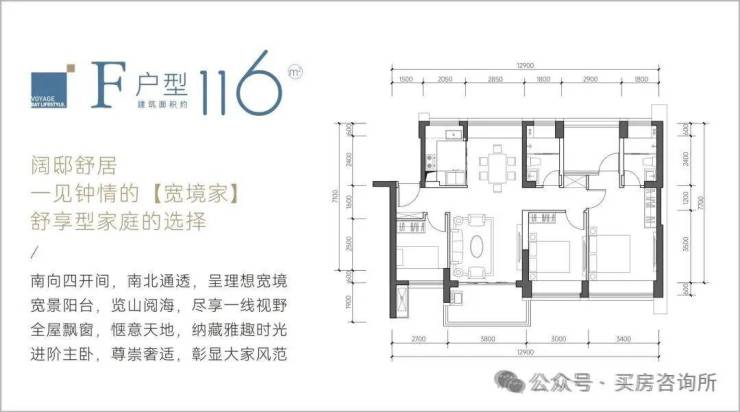 132㎡5房2卫:竖厅南北通,客厅开间3.8米主卧3.5米,对比116尺度基本一样,主要就是多了一间房。