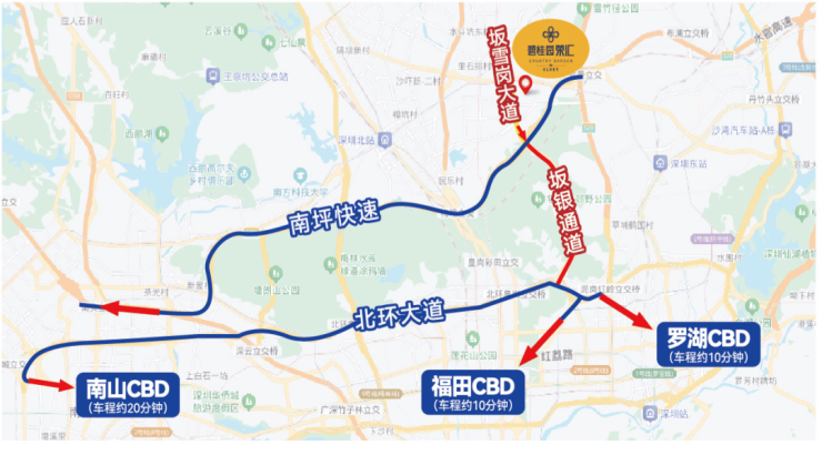 ◇坂田在深圳的中轴,越过梅林关就是福田中心区,是距罗湖、福田、南山CBD最近板块。