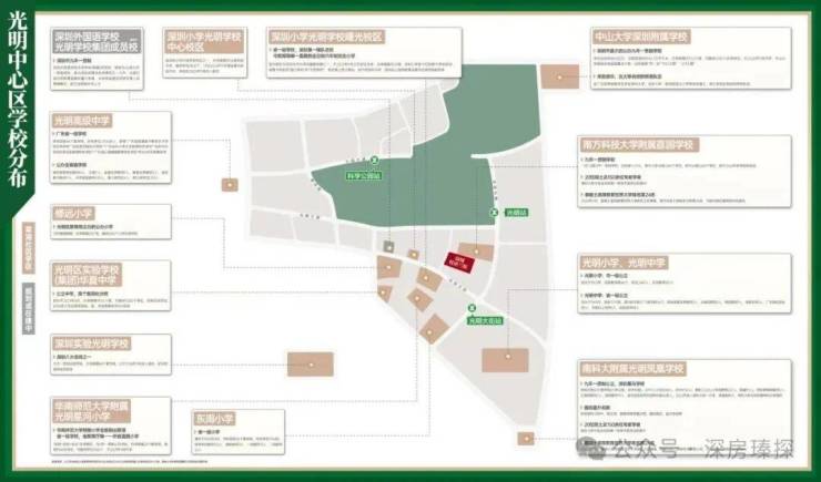 另外深圳外国语光明星光学校,距离约700米,已经对外官宣,深圳四大名校之一,计划是在2026年首次招生,该校也是在学区范围内,是1所九年制公办学校,规划45个班,有2100个学位。