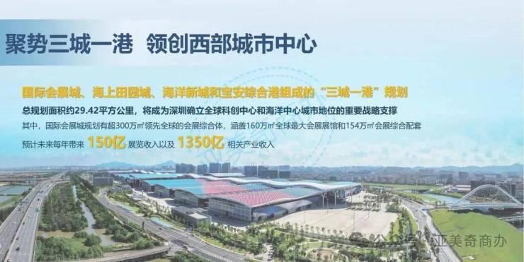 规划明确要将西部城市中心打造为宝安两大中心区“主引擎”之一,统筹沙井、新桥、松岗三大片区叠加深圳“多区”战略以及前海扩区新中心价值,聚合会展新城、航空新城、海洋新城等多能级辐射将打造干亿级产业集群智创高地,未来巨量价值不可预估。