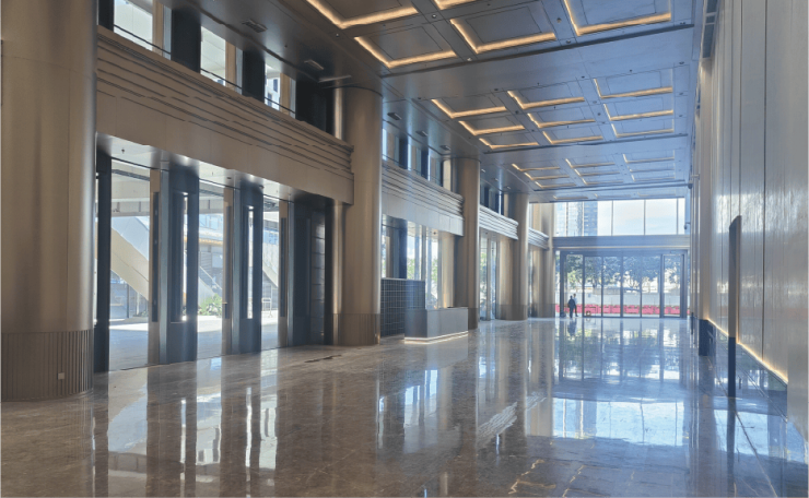 双层11.1米通高奢阔大堂,以大气恢弘的挑空设计展现现代典雅风格,通透明亮的光影效果营造出高端商务氛围,搭配精致细节与高端材质,彰显企业实力与品牌形象,为商务接待与办公提供尊贵舒适的品质体验。