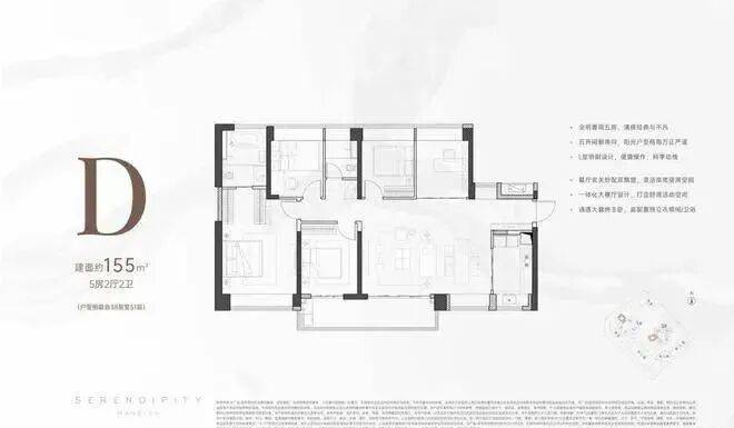 建面约155㎡全明奢阔五房震撼发售,藏品级宽绰大户,一体化大横厅设计,尽揽一方山海景致,以宽奢尺度延展家庭想象,满足三代同堂居住需求。