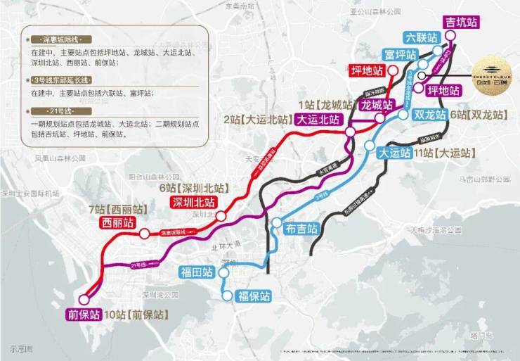 城轨方面,临近项目的深惠城际轨道线——坪地站(在建中),未来1站到龙城、2站大运北、6站到深圳北、7站到西丽、10站速达前海。深惠城际预计2026年开通,时速达160公里,到时候去哪都很方便、快速。