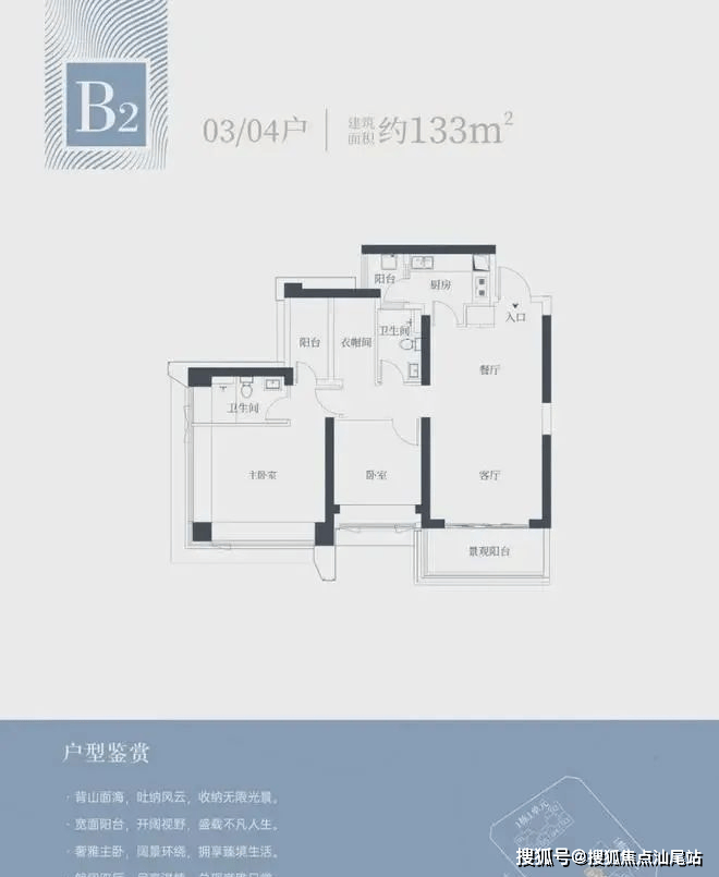 1栋二单元B2户型:面积约为133㎡