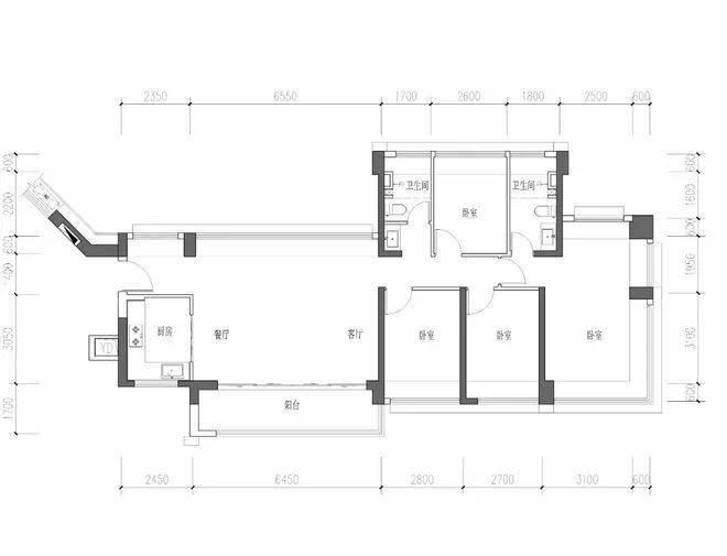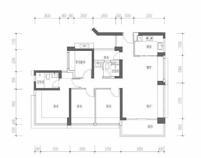 ,设计的是竖厅格局,客厅3.1米开间,LDKB一体化,S墙设计预留冰箱卡槽位,3个卧室分别做到了主卧10.2㎡/次卧8.55㎡/次卧7.95㎡(包含墙体飘窗),U型厨房,卫生间三段式分离,得房率约77%(不含赠送),西南朝向。