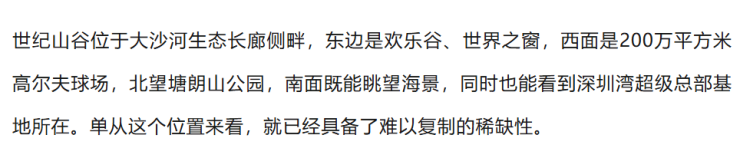 项目西边是名商高尔夫球会,东北方是香山美墅系列和波托菲诺系列的豪宅社区,东南角就是世界之窗,整体居住环境和氛围都很不错。