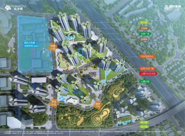 远洋城是一个总建面超69万㎡的综合体大盘,涵盖了住宅、写字楼、商业、公园、学校等配套,也是目前平湖体量最大的楼盘,。