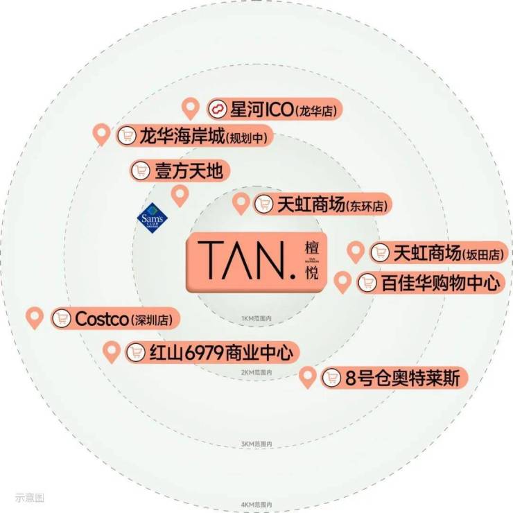 项目自带特色商业街,并且紧邻项目有天虹商场(东环店),距离壹方天地(建面约60万㎡航母级体验式商业集群)约1.5km,周边还有山姆会员店、天虹商场(坂田店)以及Costco会员旗舰店等,一站式满足不同生活需求。