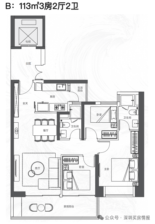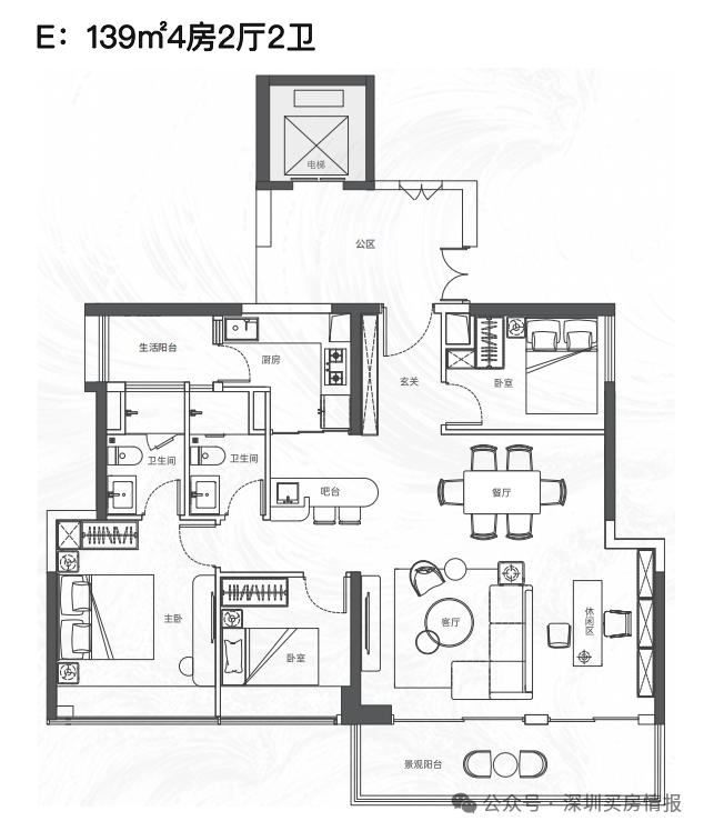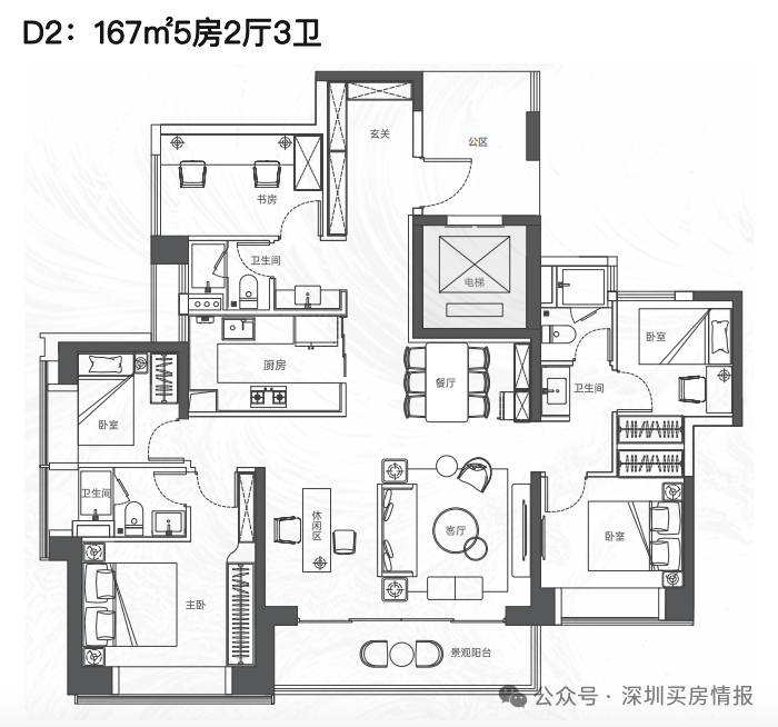 该项目将推出大约380套住宅,建筑规划包括2栋塔楼,其中高区采用4梯4户的设计,低区则为5梯5户,确保了每户都能享有独立电梯厅的配置。