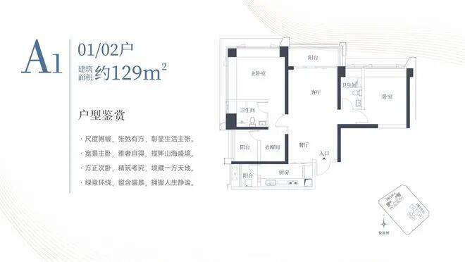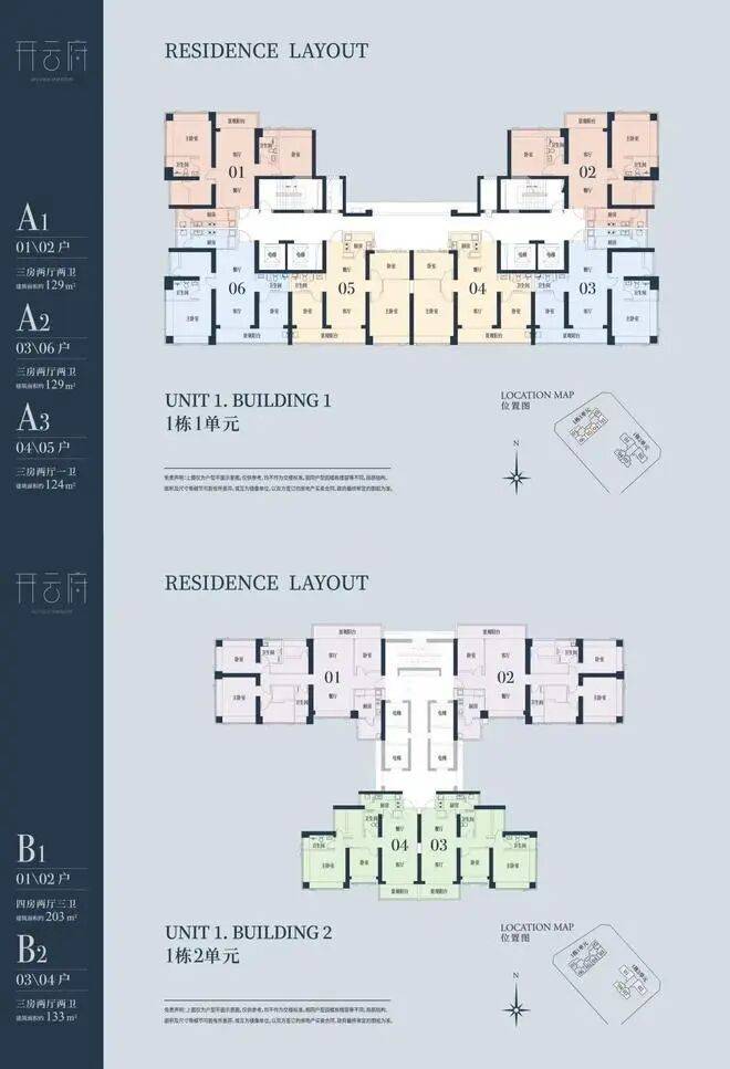 1栋一单元A1、A2户型:面积约为129㎡