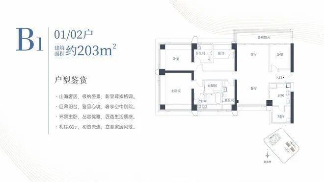 1栋二单元B1户型:面积约为203㎡