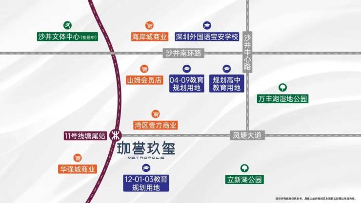 在九年义务教育方面,「珈誉玖玺」位于凤塘大道南侧,未来应该是上住宅小区西南边规划的深圳外国语宝安南校区小学。由于目前尚未建设,短期内应该仍要到「珈誉府」那边的深外南校区借址上学。