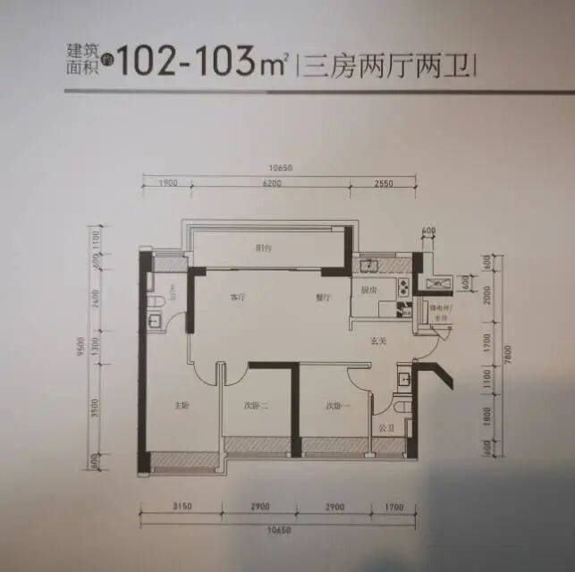 03.东北向【建面102㎡3室2厅2卫】3梯6户,层高3.00米,总楼层47F,约420万