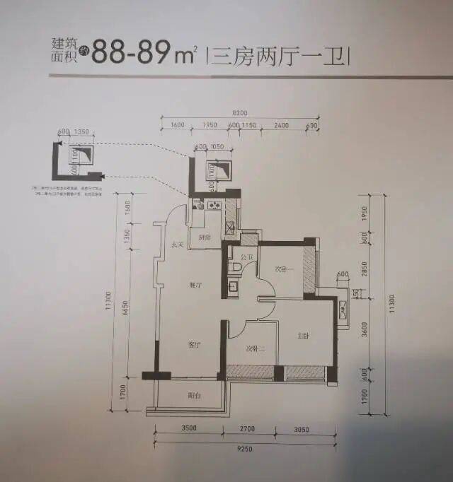 06.东南向【建面89㎡3室2厅1卫】,3梯6户,层高3.00米,总楼层47F;约360万