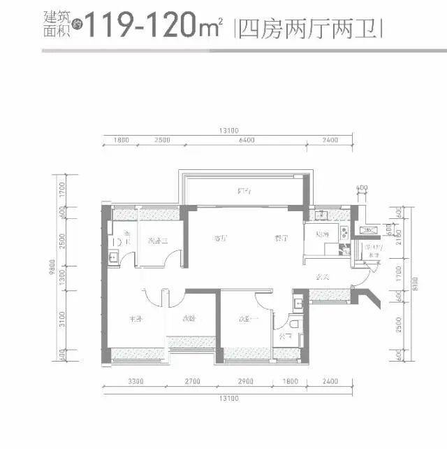 03.东北向【建面120㎡4室2厅2卫】3梯6户,层高3.00米,总楼层46F,约510万