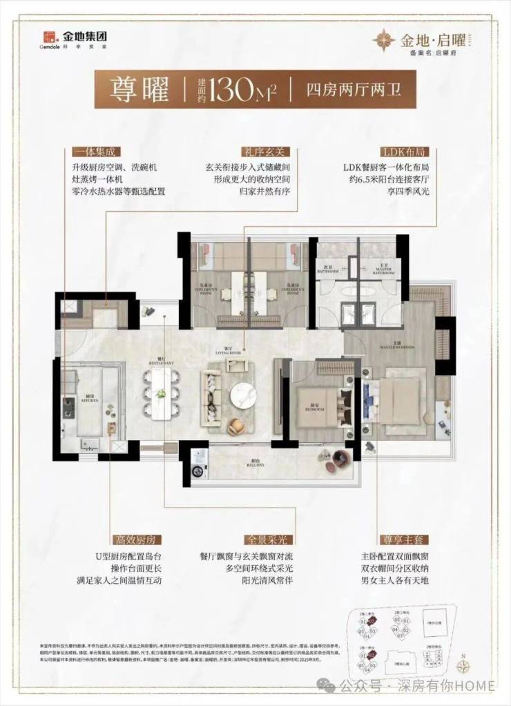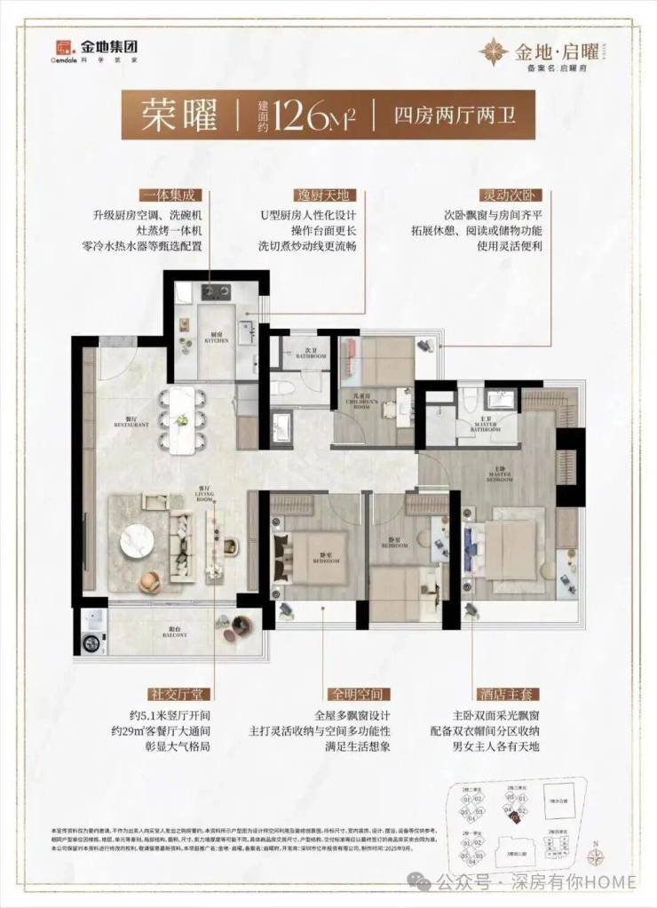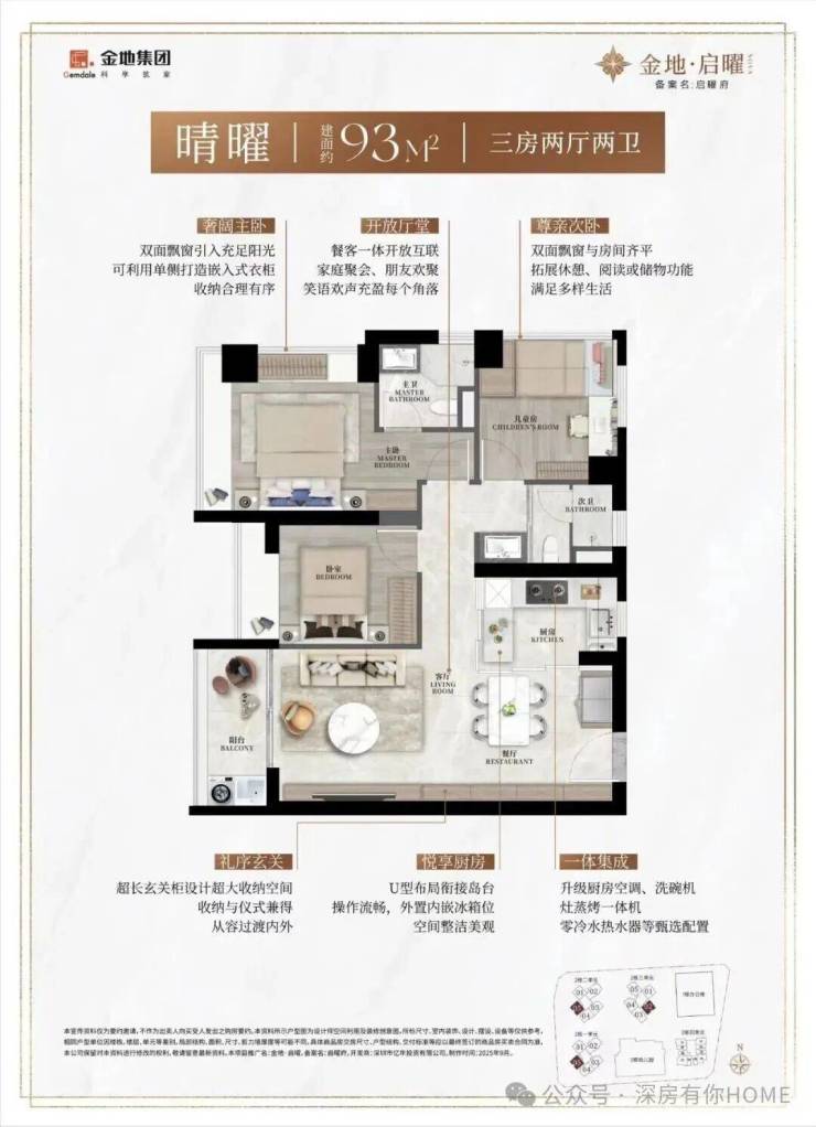 作为新规住宅的代表,金地启曜府的户型设计以高得房率、全南向布局和功能多样性 为核心亮点,得房率预计可达约90%(含赠送),实际使用面积比传统户型多出约10%。