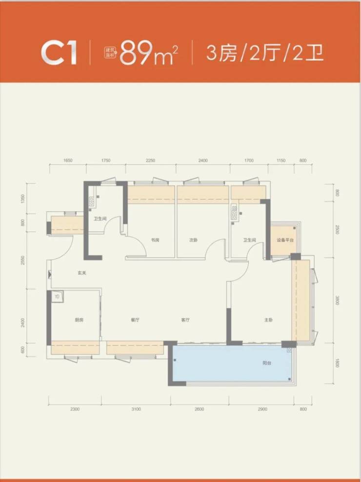 89㎡的3房2厅2卫,折后总价250-270万/套