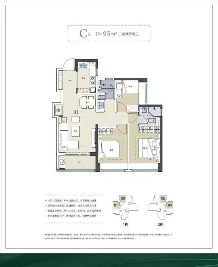 产品信息:建面约 75-95-120 ㎡ 3-4 房