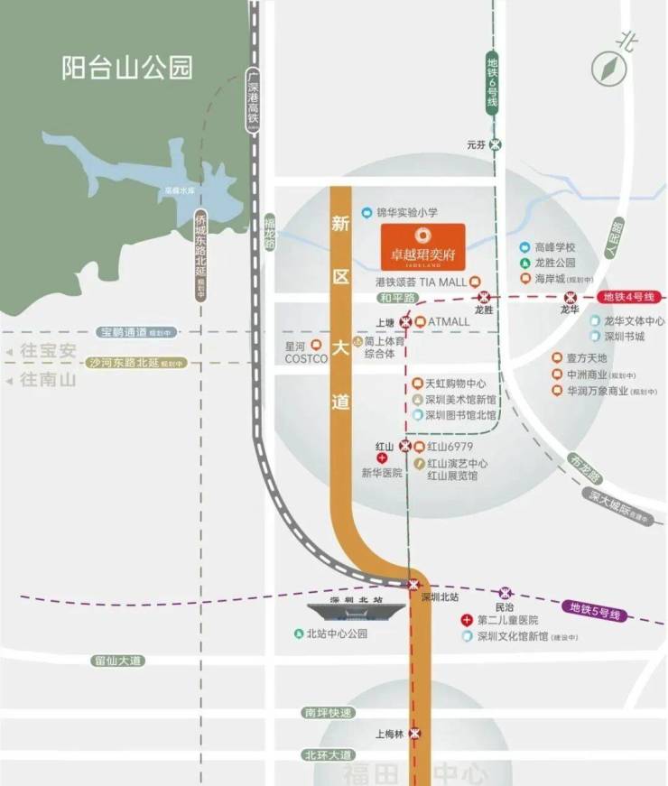 3公里范围内:壹方天地、华南首家COSTCO、天虹商业中心、红山6979、龙华海岸城(规划中)、华润上塘万象系商业(规划中)、中洲商业中心(规划中)等全系缤纷商业。