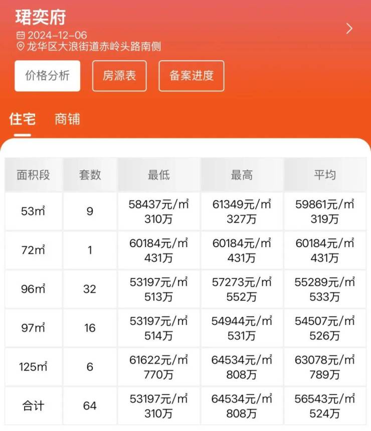 备案单价:5.3--6.4万