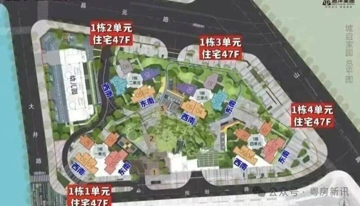 当前首推的远洋城启家园,总占地面积约1.65万㎡,总建筑面积约13.75万㎡,计容建筑面积约10.5万㎡,容积率6.38,绿化率40%,共由4栋47层高的住宅组成,其中1栋1/2/3/4单元住宅47F,2栋是1所9班幼儿园。
