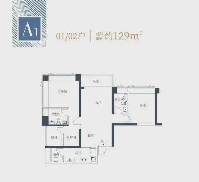 1栋一单元A1、A2户型:面积约为129㎡