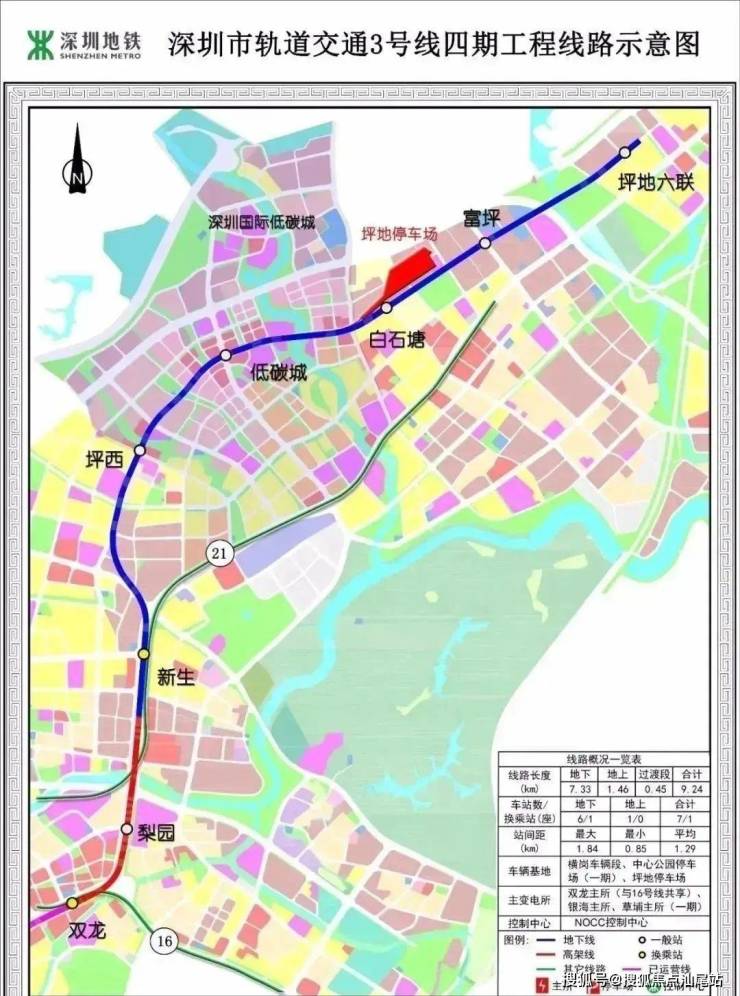 这期工程自3号线既有双龙站,沿线设站梨园、新生、坪西、低碳城、白石塘、富坪,至坪地六联站,预计2025年通车。
