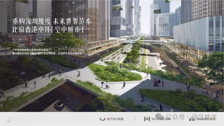 项目片区的城市路网将以香港中环为范本,着力建设24米以下魅力“城市” ,并利用10m高人行连廊和10m高骑行系统等打造无车街区,建成未来城市的多元立体交通系统范本。