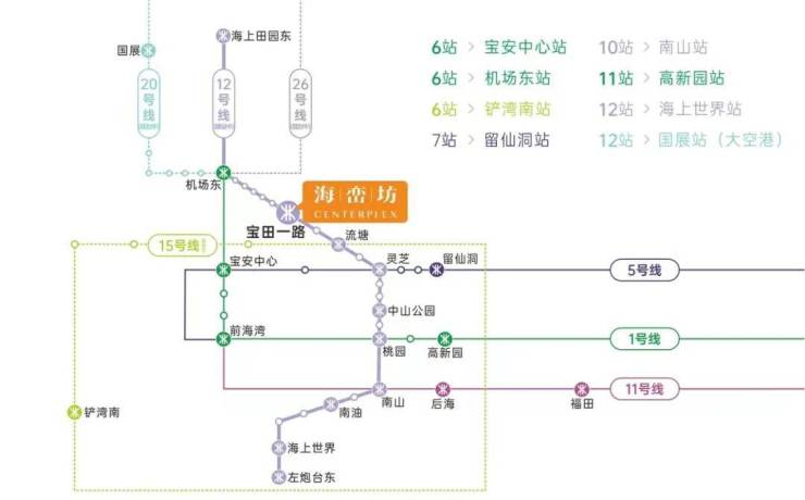 12号线宝田一路站1站直达深圳首条地铁“环线”15号线流塘站(规划中),连接前海、科技园、宝中、大铲湾腾讯企鹅岛等重要片区,将深圳核心高科技、金融、高端产业等汇聚,吸引人才、技术等密集,区域增值空间升级。