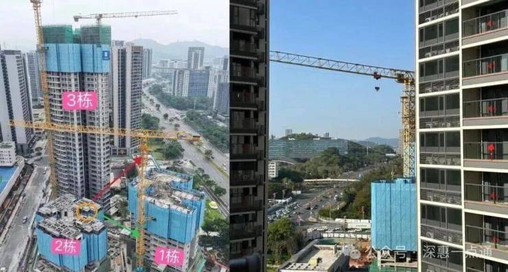 首先是01户型106㎡,他的主阳台,两次卧+主卧四开间红色箭头西南方向看出去楼下是园林,同时会被3栋跟1栋夹在中间,下图右侧就是隔壁华润润晖府的楼夹在中间阳台拍出去的景观,可以参考一下大概就是这样遮挡夹在中间