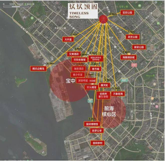 2km范围内悦享千亿大湾区会客厅配套:包括“湾区之光”地标摩天轮、欢乐海港、滨海文化公园、宝安体育场、图书馆、青少年宫、演艺中心等。