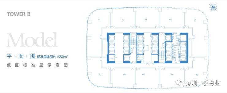 B栋300平左右起(整层1500平)