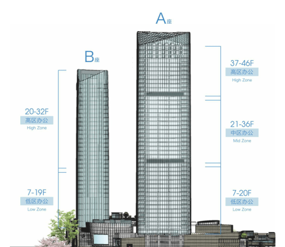标准层面积:A座2000平米;B座1500平米