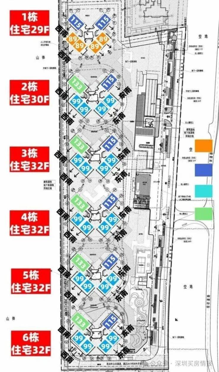 总规划1086户,全部3梯6户设计,户户朝南,地下室有3层,规划1116个车位,车位比1:1.02。