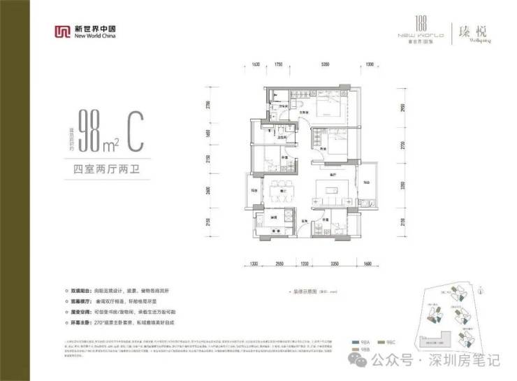 新世界188号·瑧悦这个盘,优点很明显:地铁口150米,真正地铁上盖;新规神户型,得房率90%-96%,76㎡做三房、98㎡做四房;港资新世界开发,品牌有保障;248万起买精装三房,上车门槛极低;教育配套优质,港中大附属学校在旁;纯商品房,圈层纯粹;90万㎡超级大盘,自带商业配套。