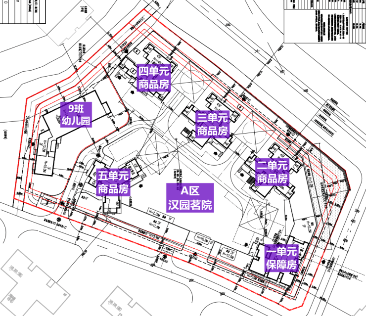 汉园茗苑分两个地块A区和B区,A区是由4栋高层住宅和1栋保障房组成,总1014户,其中保障房331户,可售商品房683套;一单元、五单元层数为46层,二三四单元层数为45层;一栋一单元为保障房;