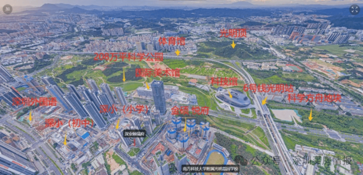 小学学区划分在南科大附属光明荔园校区、光明楼村第二学校小学部、教育科学研究院实验学校(光明)小学部、光明区楼村小学、中山大学深圳附属学校小学部;