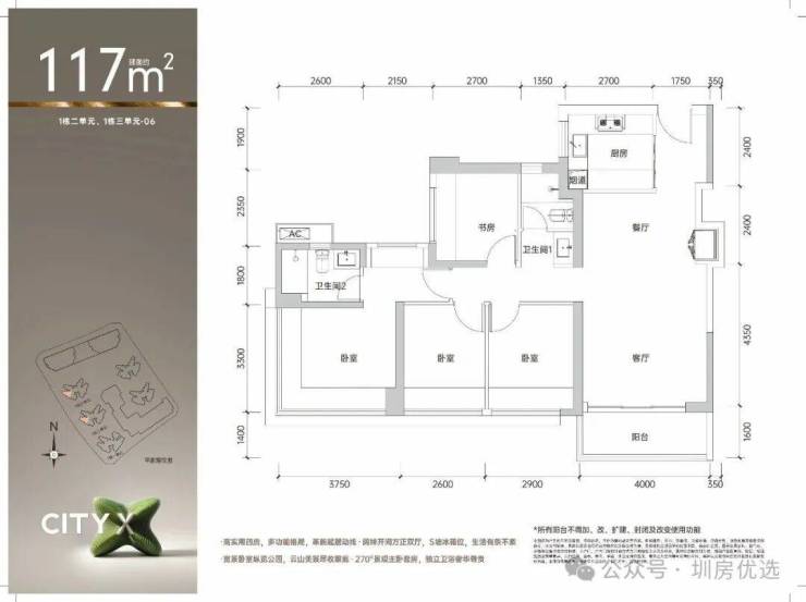 117㎡的4房2厅2卫得房率约75.4%(不含赠送),东南或西南朝向。套内面积88.24㎡+赠送面积13.43㎡=实得101.67㎡,加上赠送后得房率约86.87%。
