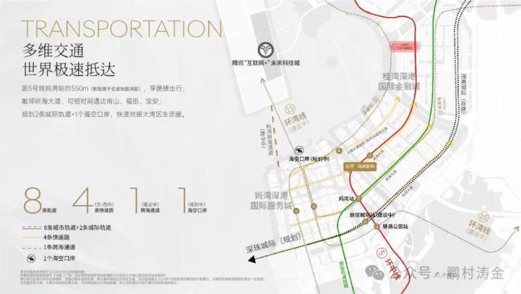 距5号线妈湾站约550m,毗邻听海大道,可快速通达南山、福田、宝安及大湾区生活圈;