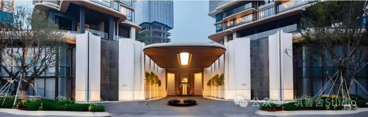 大门入园设置镜面水廊、阵列乔木、线性灯光步道,从城市喧嚣逐步过渡到静谧社区;人车完全分流、无地面车流干扰,大门不仅是形象封面,更是社区私密安全边界。