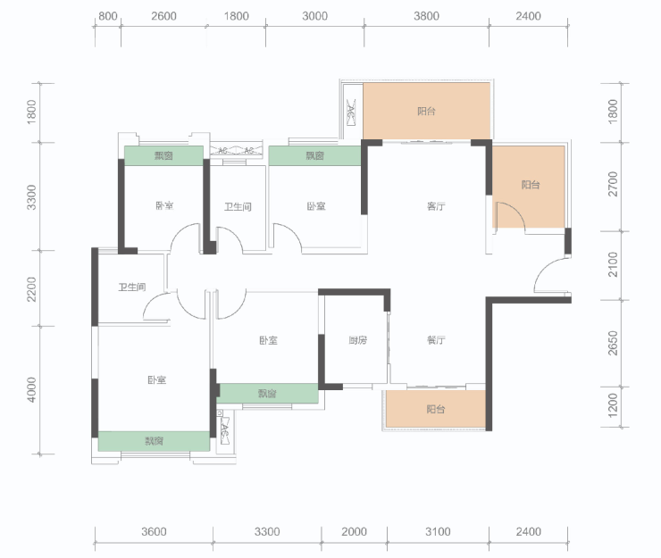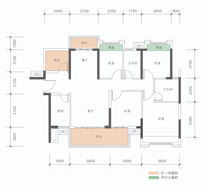 B户型: 100㎡(3+1房,2卫)同级面积稀缺3+1房、稀缺三开间朝南,