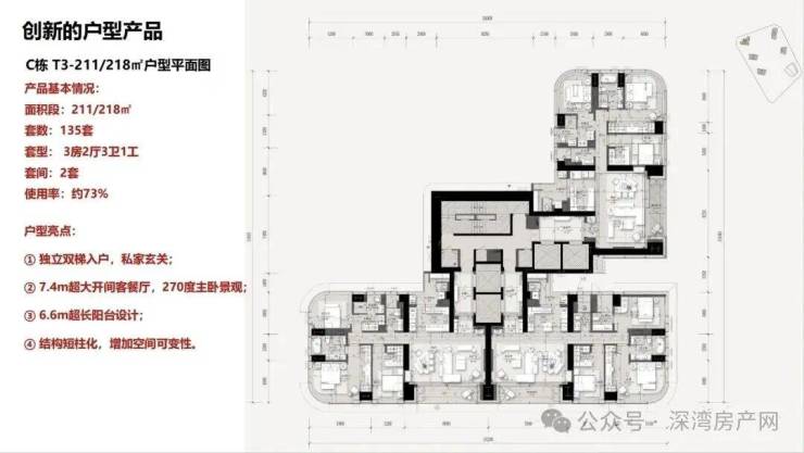 中信信悦湾作为深圳湾的顶级豪宅项目,其价格也体现了其高端的定位 。均价在 17万起,总价门槛达 3500 万起 。不同户型因面积、楼层、景观视野及配置差异,价格梯度明显 。其中,调整后面积达 510㎡的顶豪户型作为项目顶级藏品房源,作为对标澐玺的项目,顶级大平层总价估计也是要突破一个小目标的了 。