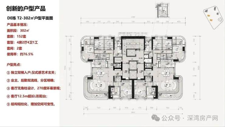 D/E栋 (约302/307㎡) :层高3.5米,各约80余套;
