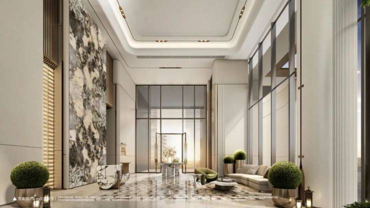 约9m高臻奢大堂,精研艺术与生活交融之美,匠心雕琢金属与石材质感,让归家之路成为艺术巡礼。