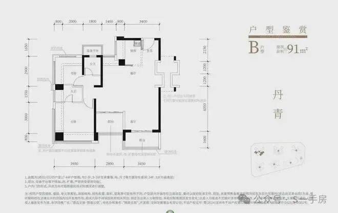 91㎡的4房2厅2卫,设计的是经典竖厅格局,进门入户玄关,客厅3.5米开间,动静分区,三开间朝南,4个卧室分别做到了主卧13.02㎡/次卧9.23㎡/次卧6.9㎡/次卧6.2㎡(实测面积,去掉墙体),主卧+1个次卧270°飘窗,U型厨房,卫生间三段式分离,得房率约101.3%(包含赠送),西南或东南朝向。