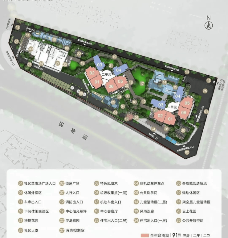 主力户型:建面约 81-91㎡三房两厅两卫.