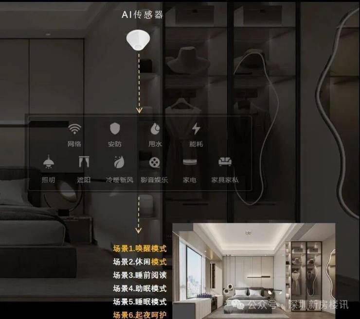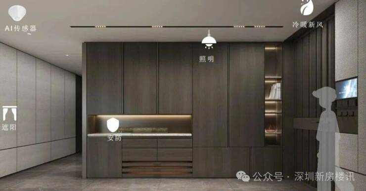 中控系统“可视可说”,并带有AI人体超感,不仅可以语音控制空调、扫地机器人、窗帘、灯光、音乐,还能在主人不发号指令的情况下,智能切换场景,非常炫酷!
