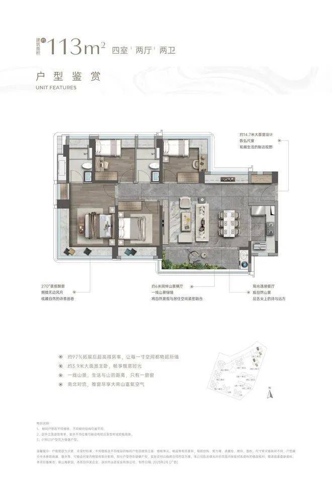 建面约113㎡阔绰四房 低密山居更近一步