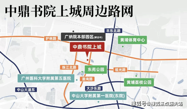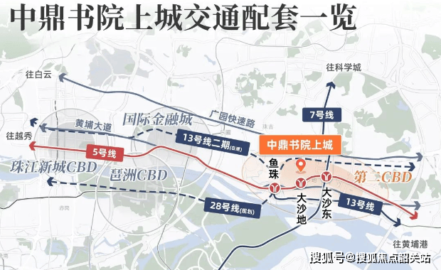 项目距离5号线大沙地站约800米,同时临近已开通的7号线二期大沙东站和规划中的13号线裕丰围站,构成了黄金3地铁交汇点。加上广园快速、黄埔大道、广佛高速以及广州环城高速“三横一纵”的路网布局,使得前往天河、越秀、荔湾等主城区变得异常便捷。此外,家楼下多条公交线路汇聚,进一步丰富了出行方式。